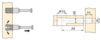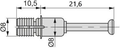 El perno de expansión 5912805 une los paneles de muebles en combinación con conectores excéntricos de ⌀15 mm (19/32″) ocultos y de ajuste preciso.