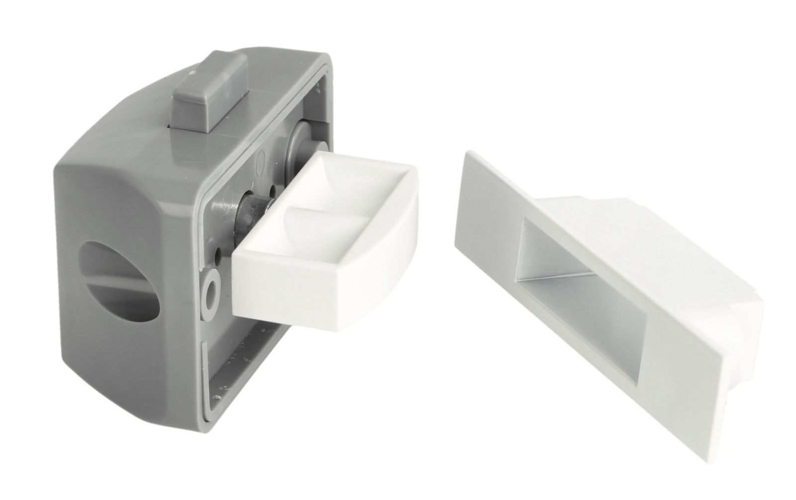 La característica especial del cierre de pulsador 14.03.045-0 es que la contraparte (placa de cerradura) tiene dos topes accionados por resorte. Al cerrarse, estos topes aseguran que la puerta se cierre suavemente y no haga ningún ruido mientras se conduce.