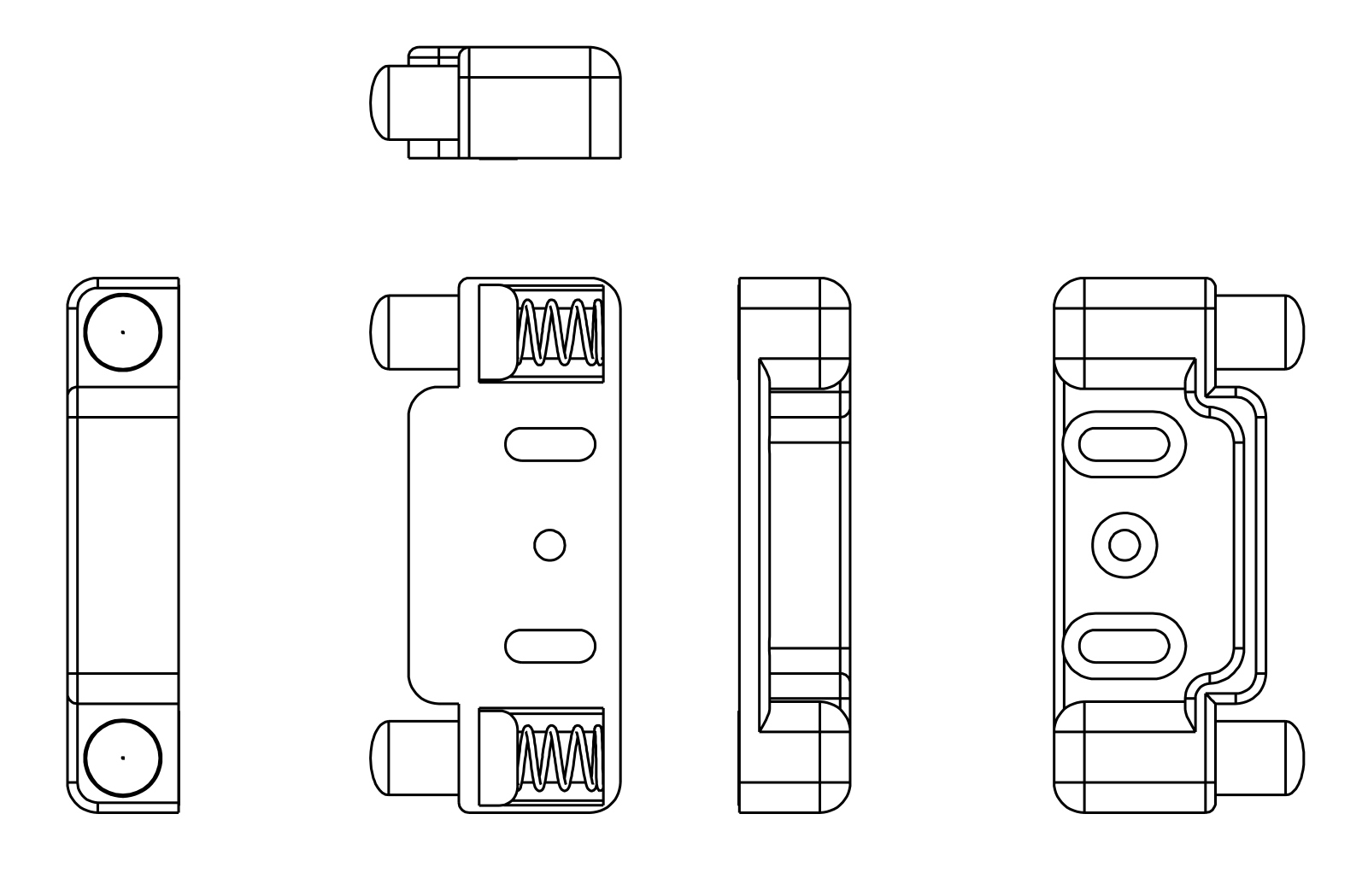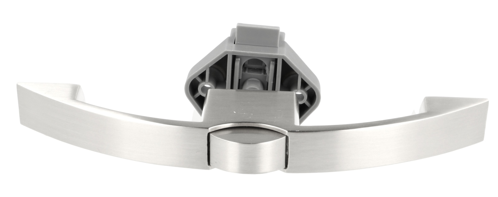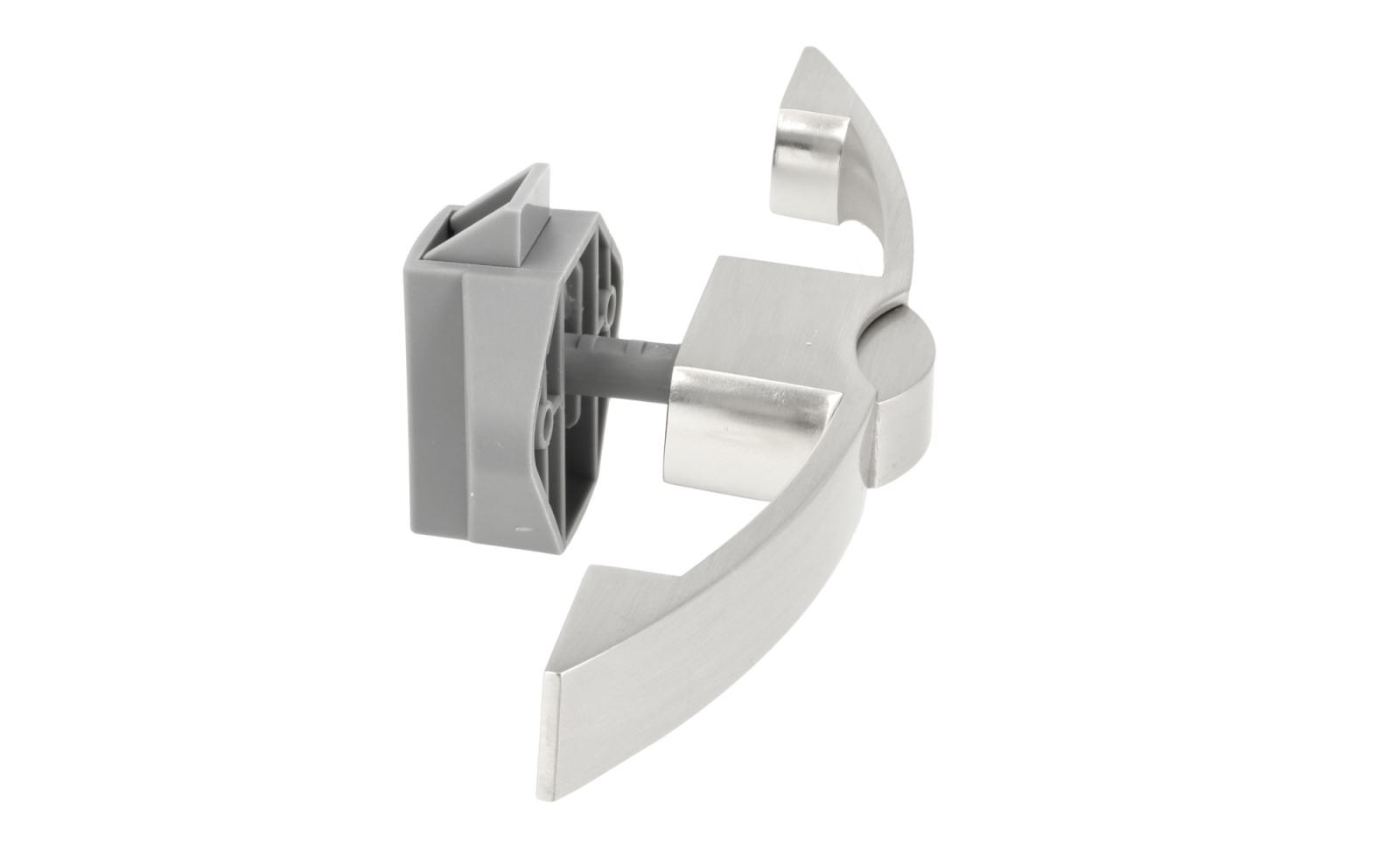 La característica especial de la manija de botón 14.03.072-0 es que la contraparte (placa de cerradura) tiene dos topes accionados por resorte. Al cerrarse, estos topes aseguran que la puerta se cierre suavemente y no haga ningún ruido mientras se conduce o vuela.