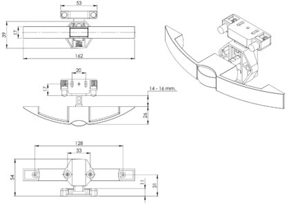 La cerradura de manija 14.03.072-0 es adecuada para espesores de puerta entre 14 mm (35/64″) y 16 mm (5/8″).