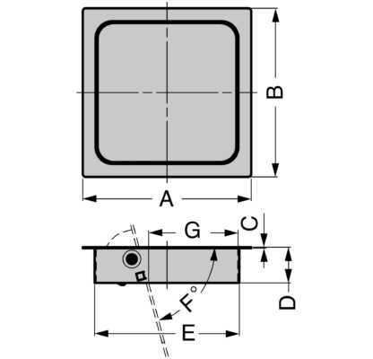 - Para la instalación de la trampilla de desagüe AD-KH028-HL, se debe realizar un recorte con las dimensiones (H x J) 277 x 277 mm (10-29/32″) en la superficie (para más detalles ver plano de